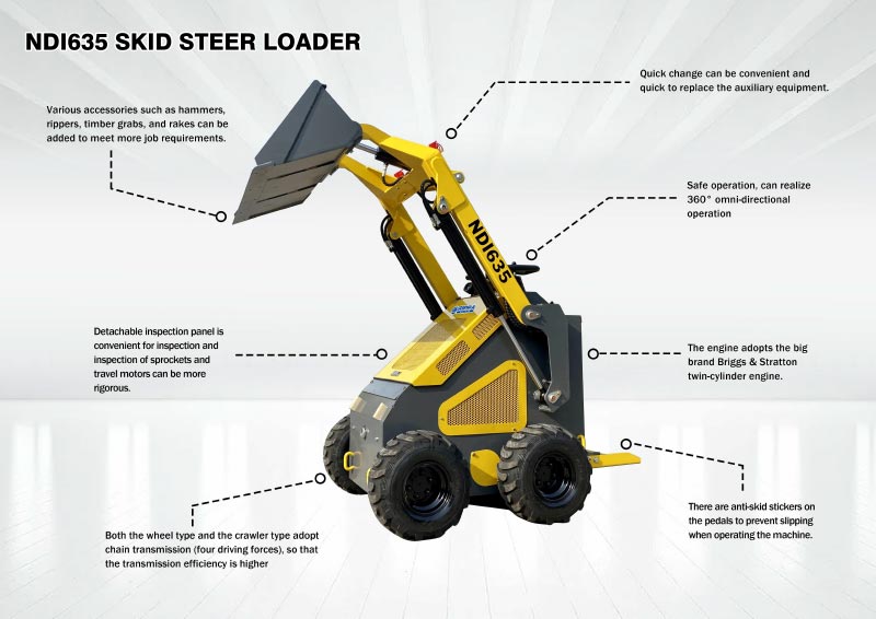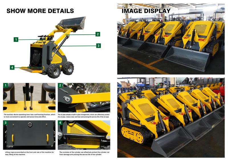 A minicarregadeira de rodas é geralmente usada em condições onde o local de trabalho on-line é pequeno, o piso é irregular e o conteúdo do trabalho muda com frequência. É apropriado para construção de infraestrutura, aplicações industriais, carga e descarga em docas, ruas de cidades, edifícios residenciais, fazendas, galpões de gado, pistas de aeroportos, etc. Além disso, pode ser usado como equipamento auxiliar para máquinas de desenvolvimento de engenharia em grande escala.